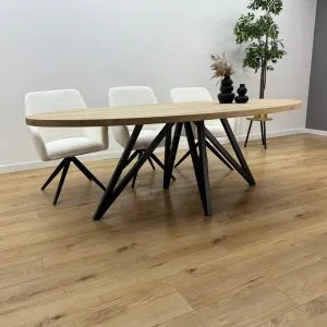 Foto: Prachtige glad geschuurd ovale eiken tafelbladen met rechte rand of verjongde rand, gemaakt van het mooiste eikenhout en volledig massief! Bladdikte: 4cm