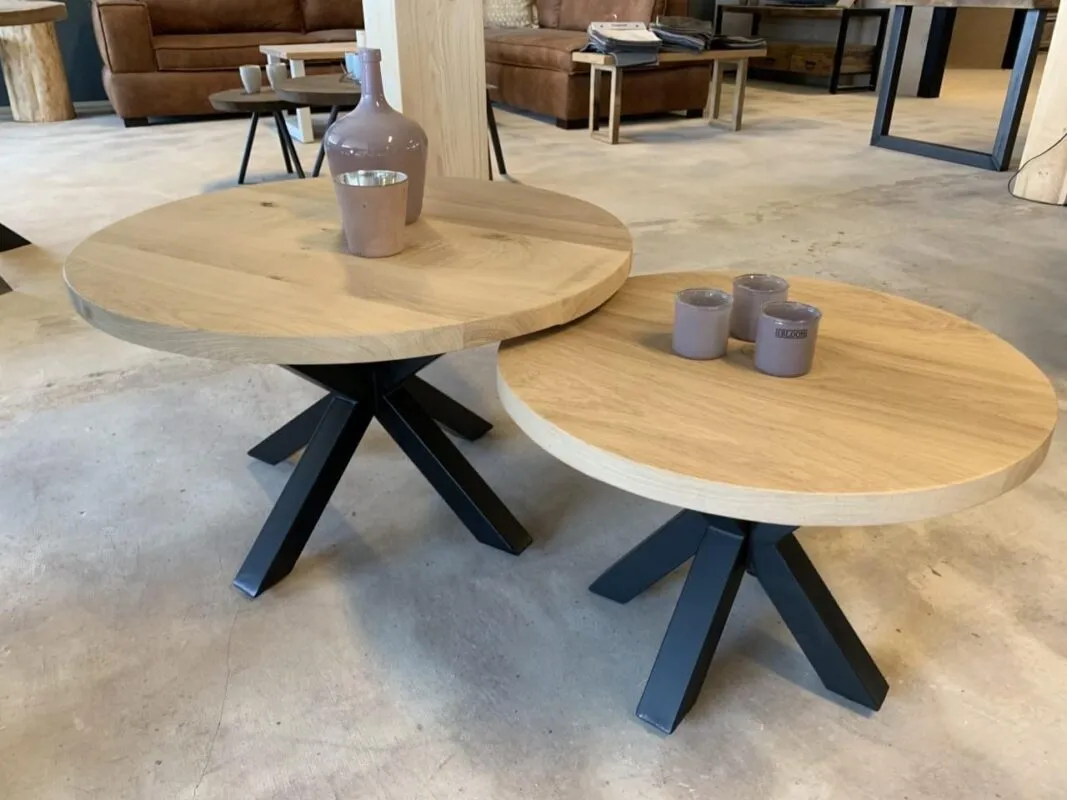 Eiken salontafelset 60/50 – behandeling: Skylt lak – Tripod onderstel
