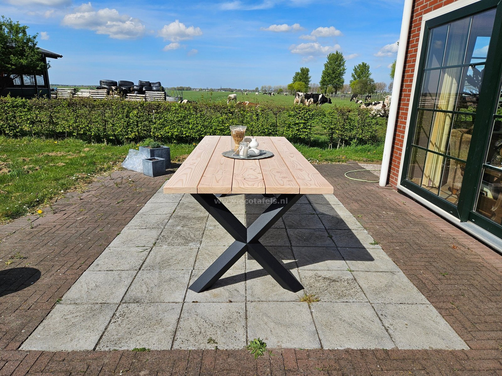 Douglashout tuintafel met Diamant X poten