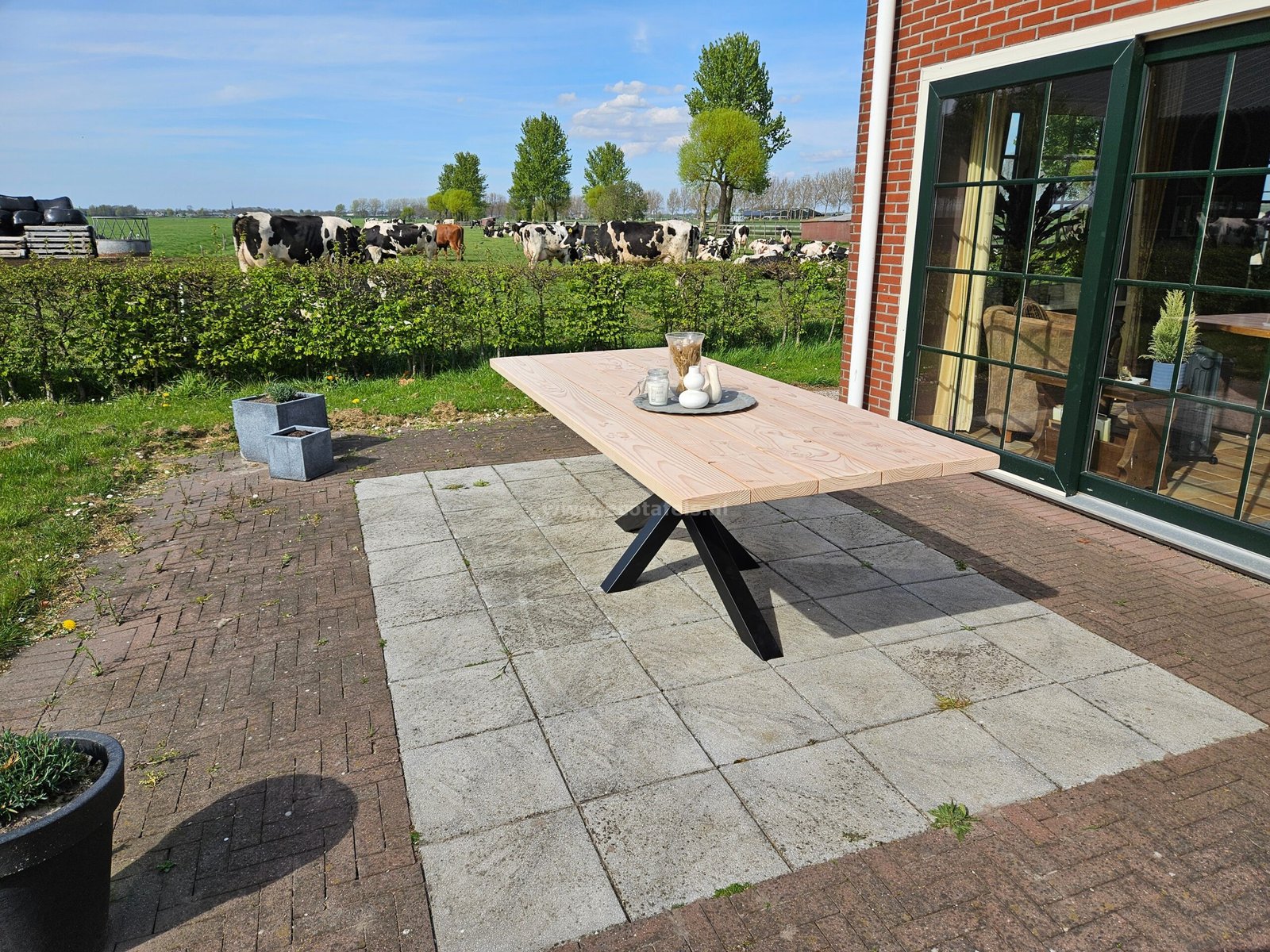 Afwerking Tafelblad: Je hebt de keuze om het tafelblad te behandelen met verschillende onderhoudsopties, zoals nano-coating, kleuren washbeits of olie. Deze afwerkingen beschermen het hout tegen weersinvloeden en helpen de natuurlijke schoonheid van het Douglashout te behouden.
