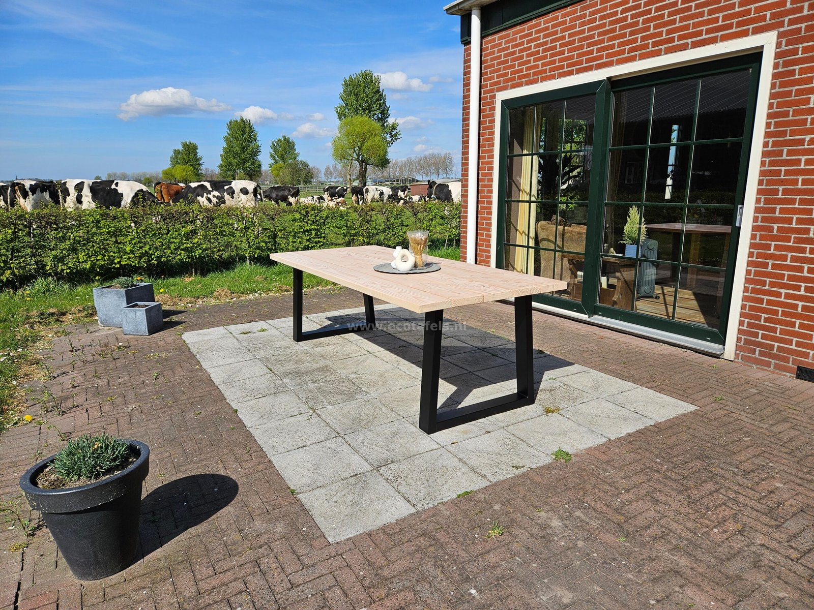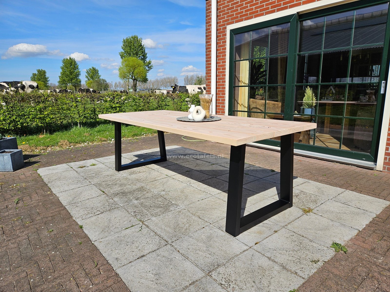 Douglashout tuintafel met Trapezium poten