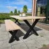 Afwerking Tafelblad: Je hebt de keuze om het tafelblad te behandelen met verschillende onderhoudsopties, zoals nano-coating, kleuren washbeits of olie. Deze afwerkingen beschermen het hout tegen weersinvloeden en helpen de natuurlijke schoonheid van het Douglashout te behouden.
