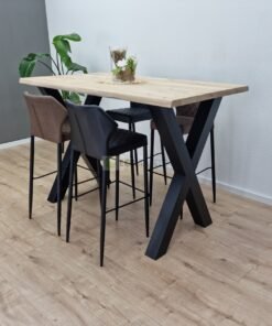 Foto: Prachtige glad geschuurd eiken bartafel met boomstam rand, gemaakt van het mooiste eikenhout en volledig massief! Bladdikte: 4cm