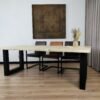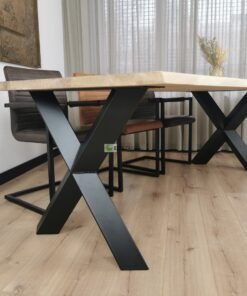 Het onderstel met Diamant X-poten valt direct op door zijn geometrische, diamantvormige kruisconstructie. Deze moderne interpretatie van klassieke X-poten voegt een architectonisch element toe aan de tafel. Het onderstel is vervaardigd uit hoogwaardig staal en zorgt voor uitstekende stabiliteit én een esthetische meerwaarde. De combinatie van strakke lijnen en een open structuur maakt het geheel zowel stoer als elegant.