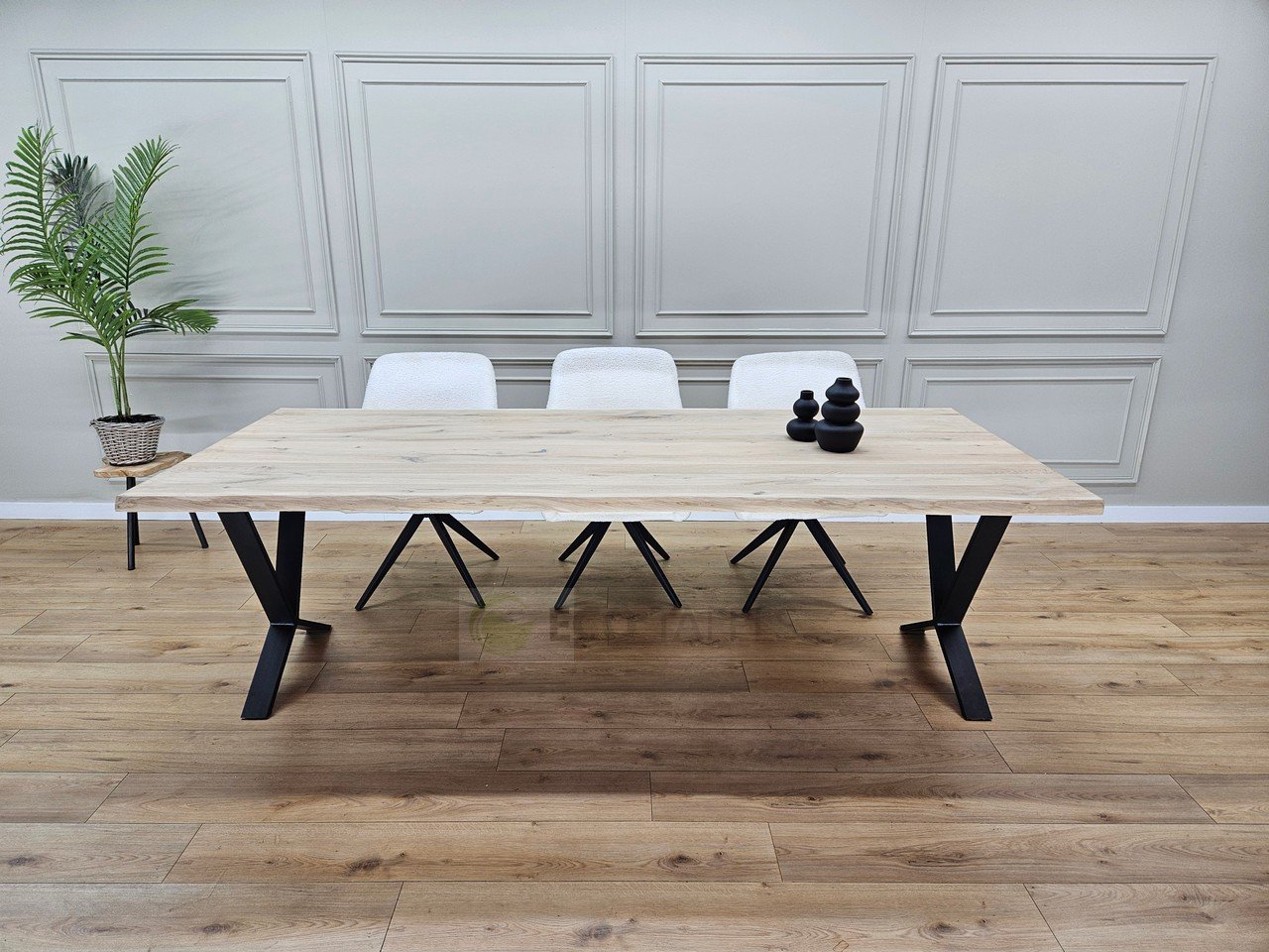 De lage X poten bieden de perfecte balans tussen een strak, modern ontwerp en robuuste stabiliteit. Het minimalistische ontwerp zorgt ervoor dat de tafel een open en uitnodigende sfeer creëert in je eetruimte. Dit onderstel biedt niet alleen visuele aantrekkingskracht, maar ook comfort en praktische voordelen, met voldoende beenruimte en een solide basis.