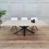 Het Matrix-K onderstel onderscheidt zich door zijn krachtige vorm en industriële ontwerp. De gekruiste metalen poten in K-vorm zorgen voor stabiliteit én een eigentijdse uitstraling. Dit onderstel combineert stoer staal met strakke lijnen, wat perfect contrasteert met de natuurlijke vorm van het eikenhout. Zo ontstaat een harmonieus geheel dat zowel functioneel als esthetisch aantrekkelijk is.