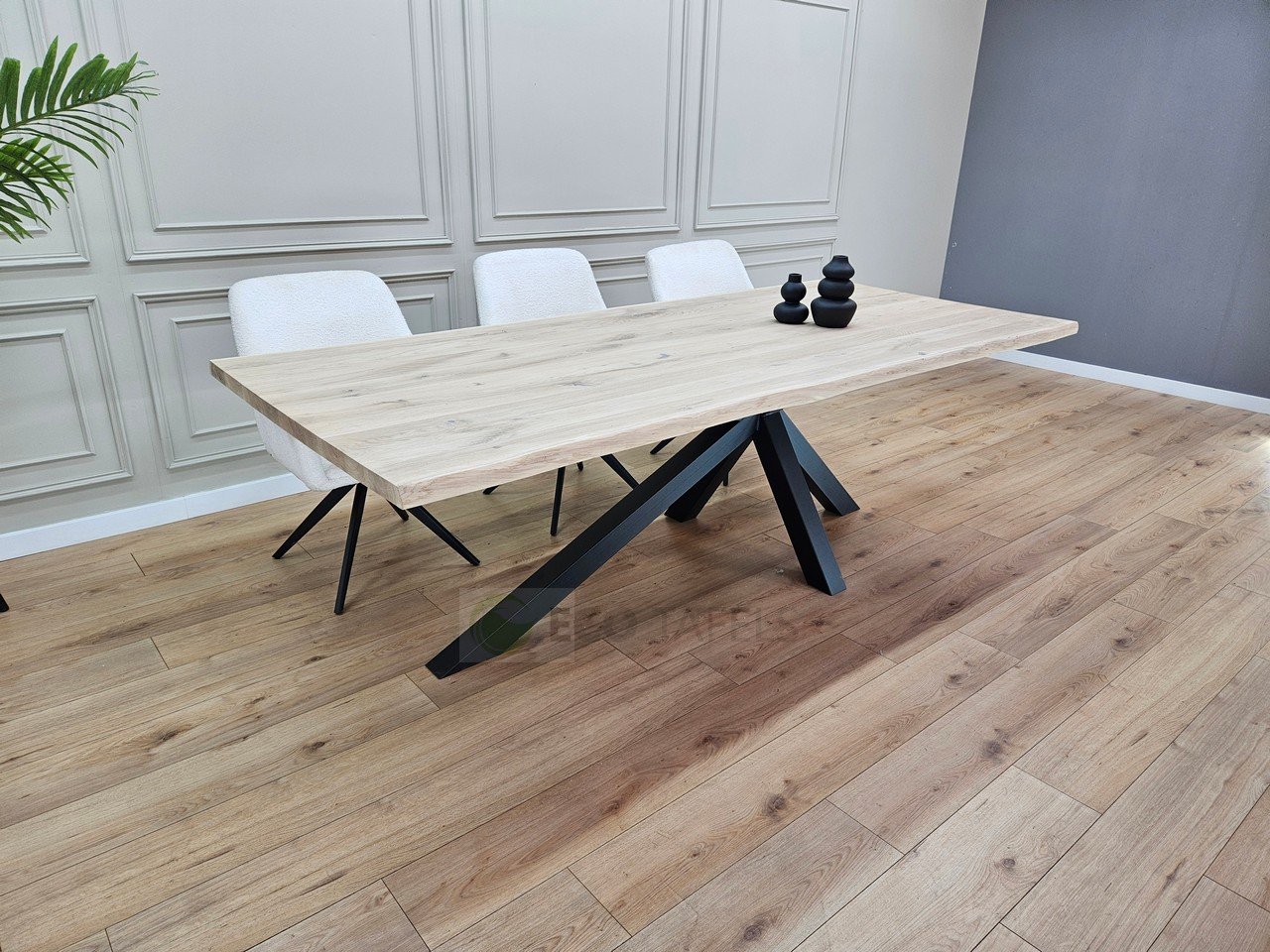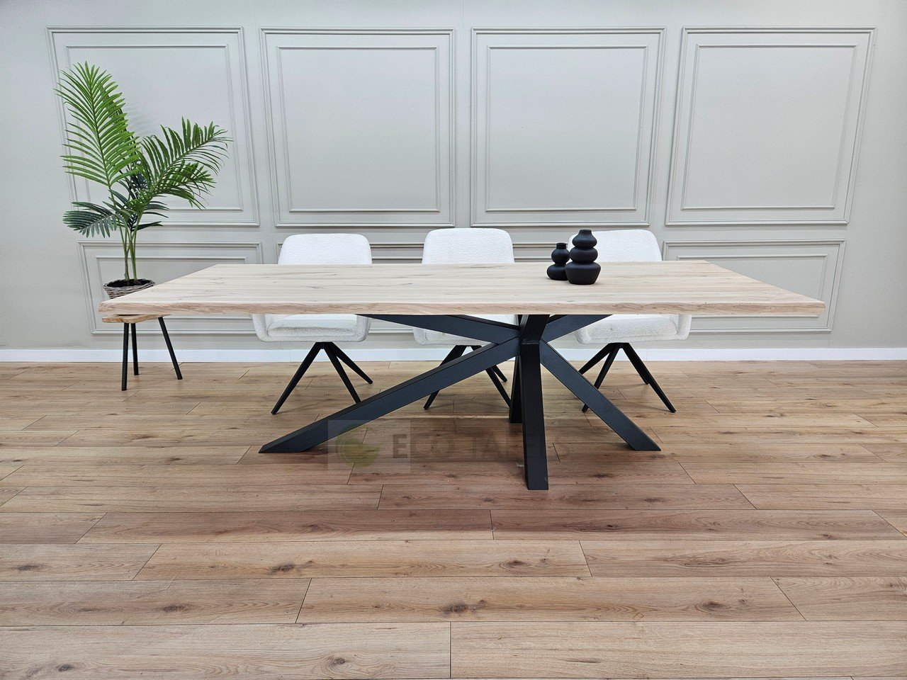Het Matrix-K onderstel onderscheidt zich door zijn krachtige vorm en industriële ontwerp. De gekruiste metalen poten in K-vorm zorgen voor stabiliteit én een eigentijdse uitstraling. Dit onderstel combineert stoer staal met strakke lijnen, wat perfect contrasteert met de natuurlijke vorm van het eikenhout. Zo ontstaat een harmonieus geheel dat zowel functioneel als esthetisch aantrekkelijk is.