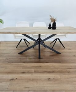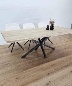Het Matrixpoot K5 onderstel is ontworpen met een industriële uitstraling in gedachten. De strakke, gekruiste stalen poten bieden maximale stabiliteit én een modern designstatement. Door de robuuste vormgeving en het gebruik van stevig staal is deze poot niet alleen functioneel, maar ook visueel bepalend voor de uitstraling van de tafel. Het vormt een solide basis die perfect aansluit bij het krachtige karakter van het eikenhout.