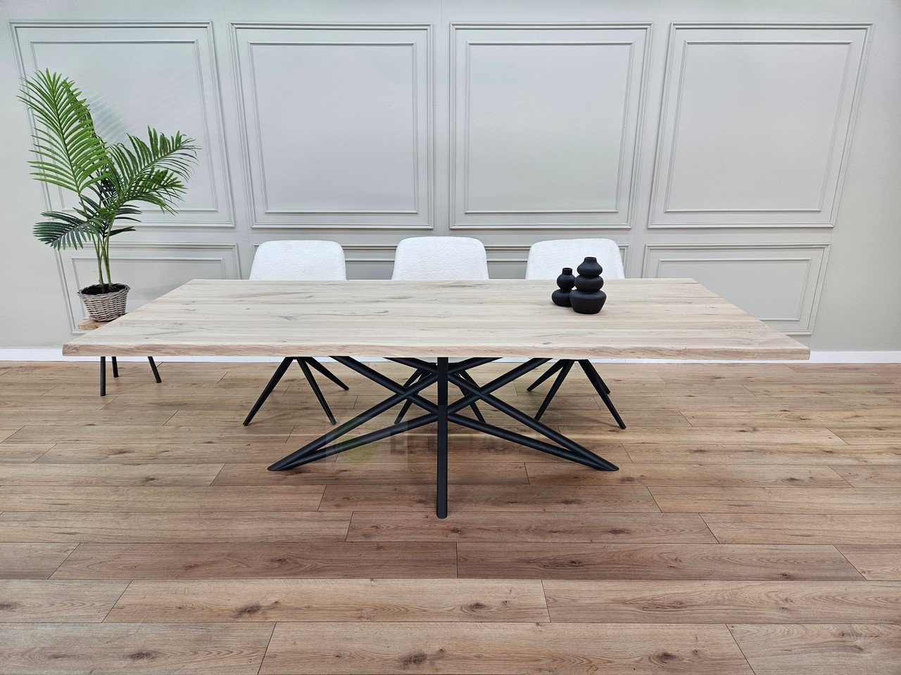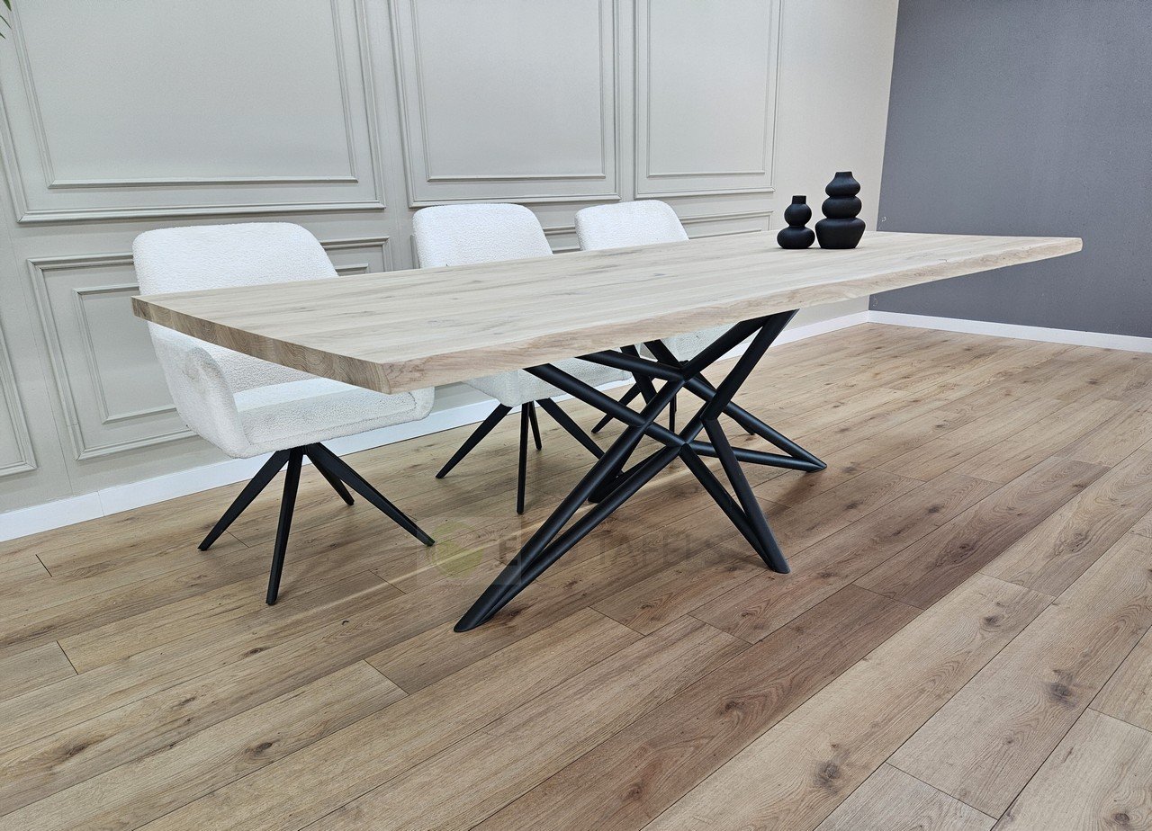 Het Ster onderstel biedt een strakke, geometrische look die niet alleen visueel aantrekkelijk is, maar ook zorgt voor extra stabiliteit. Het verfijnde ontwerp van het onderstel maakt de tafel een opvallende verschijning in je eetruimte, terwijl de robuuste basis zorgt voor een solide en comfortabele structuur. Dit onderstel geeft de tafel zowel een moderne als een natuurlijke uitstraling.