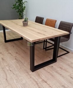 Eikenhout Boomstam Tafel met smalle U-Poten – Robuuste Elegantie en Modern Design