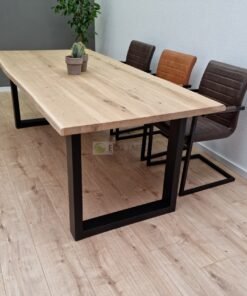 Deze tafel is meer dan alleen een meubelstuk; het is een kunstwerk. Het eikenhouten blad met de smalle U-Poten brengt de natuur in je huis en biedt tegelijkertijd een functionele eetruimte. Kortom, het is niet alleen een tafel, maar een statement dat je interieur een extra dimensie geeft.