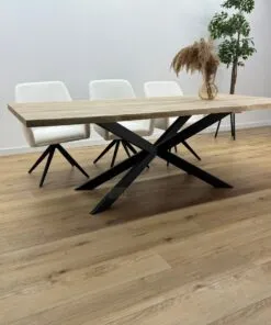 Deze tafel is meer dan alleen een meubelstuk; het is een kunstwerk. Het eikenhouten blad met het Spider onderstel brengt de natuur in je huis en biedt tegelijkertijd een functionele eetruimte. Kortom, het is niet alleen een tafel, maar een statement dat je interieur een extra dimensie geeft.