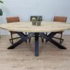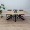 Eikenhout Boomstam Tafel met U Strip Poten – Robuuste Elegantie en Modern Design