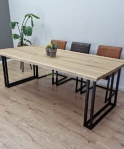 Eikenhout Boomstam Tafel met U Strip Poten – Robuuste Elegantie en Modern Design
