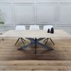 Het V-onderstel biedt een strak, modern ontwerp met een verfijnde uitstraling. Dit onderstel zorgt voor extra stabiliteit en een open, lichte sfeer in de ruimte, terwijl het tegelijkertijd de kracht en het karakter van het eikenhout benadrukt. De V-vormige poten geven de tafel een evenwichtig en elegant design dat perfect past in elke eetkamer.