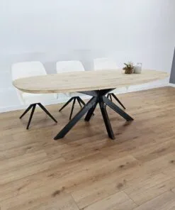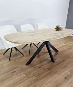 Deze eikenhout deens ovale tafel met matrixpoot Sandi is de perfecte keuze voor wie op zoek is naar de ideale combinatie van stijl, functionaliteit en duurzaamheid. Het Scandinavische ontwerp straalt tijdloze elegantie uit, terwijl het ovale blad van hoogwaardig eikenhout zowel robuust als mooi is. Het hout heeft een natuurlijke uitstraling die elke eetkamer tot leven brengt.