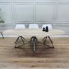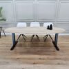 De hoge kik poten bieden zowel stabiliteit als een verfijnde uitstraling. Het strakke, minimalistische ontwerp zorgt ervoor dat de tafel een frisse, luchtige sfeer creëert in elke ruimte. Dit onderstel maakt de tafel perfect voor zowel kleinere als grotere eetkamers en voegt een elegante esthetiek toe aan het geheel.