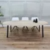 De lage X poten bieden zowel stabiliteit als een strakke, moderne uitstraling. Het minimalistische ontwerp zorgt ervoor dat de tafel een frisse, open sfeer creëert in elke ruimte. Dit onderstel maakt de tafel perfect voor zowel kleinere als grotere eetkamers en voegt een unieke esthetiek toe aan het geheel.