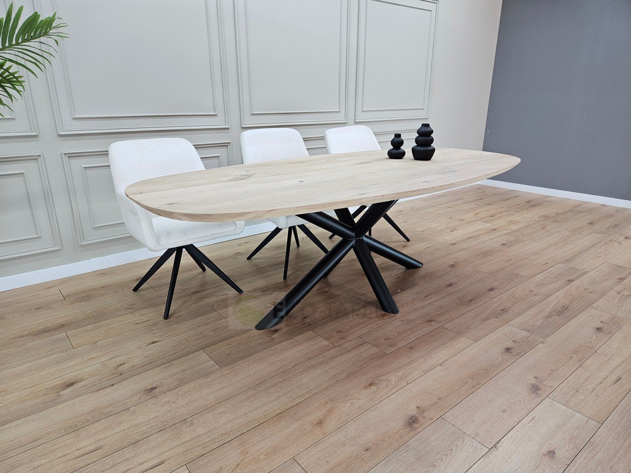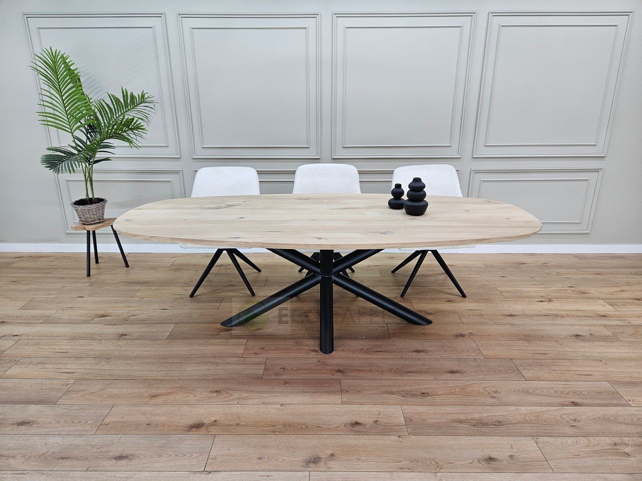 Eiken Deens ovale tafel met Matrixpoot ronde buis