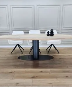 De O-Poot Ovaal biedt zowel stabiliteit als een strak, eigentijds ontwerp. Het ovale onderstel zorgt voor een moderne uitstraling die de tafel een verfijnde en open sfeer geeft. Dit ontwerp maakt de tafel perfect voor zowel kleinere als grotere eetkamers en voegt een subtiele esthetiek toe aan je interieur.