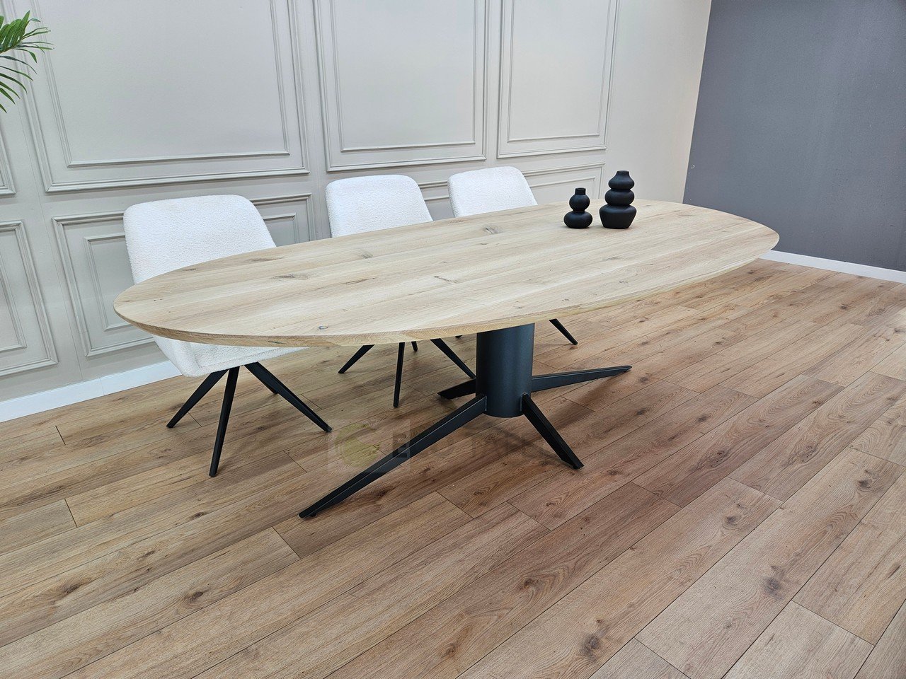 Eikenhout Organische tafel met Ostrix onderstel – Natuurlijke Vorm en Industrieel Statement