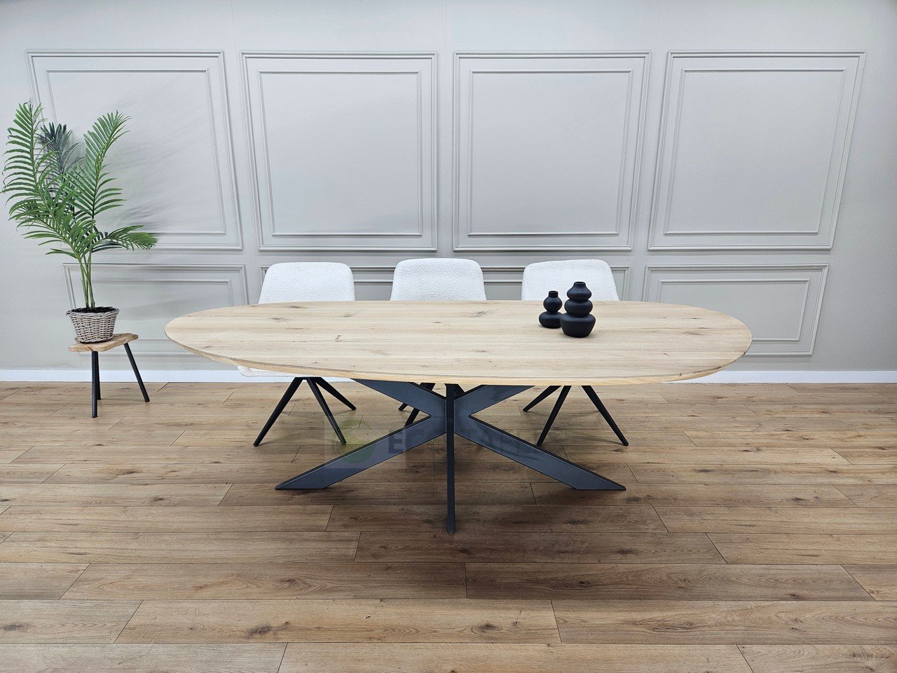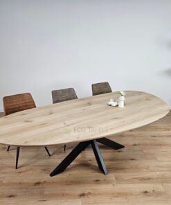 Eikenhout Organische tafel met smalle Matrixpoot – Natuurlijk Design met Strakke Finesse