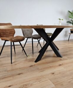 Het smalle Matrix-onderstel onderscheidt zich door zijn slanke, geometrische ontwerp dat toch zorgt voor optimale stabiliteit. De kruisende poten bieden een speels maar stevig frame, dat het natuurlijke blad prachtig aanvult zonder te zwaar te ogen. Dit onderstel geeft de tafel een moderne en luchtige uitstraling.