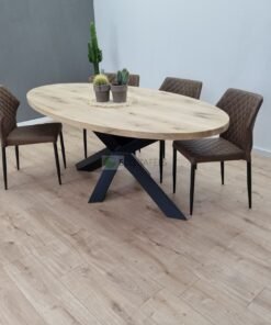 De Eiken ovale tafel met Diamant-Matrix poot is niet zomaar een meubel. Het is een stijlvolle balans tussen robuust en verfijnd, natuurlijk en industrieel. Een echte eyecatcher die moeiteloos het middelpunt van jouw interieur vormt.