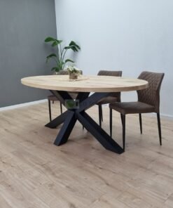 De Eiken ovale tafel met Matrix-poot combineert de rustieke charme van massief eikenhout met een strak en geometrisch onderstel. Hierdoor ontstaat een tafel die tijdloos aanvoelt, maar toch modern oogt. Ideaal voor wie houdt van natuurlijke materialen met een eigentijdse twist.