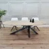 Het Ster onderstel bestaat uit meerdere poten die kruislings samenkomen in het midden, wat zorgt voor een sterke en stabiele basis. Dit onderstel is niet alleen functioneel, maar vormt ook een visueel middelpunt onder de tafel. Het moderne lijnenspel geeft de tafel een uitgesproken designuitstraling. Vervaardigd uit gepoedercoat staal voor duurzaamheid en stijl.