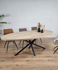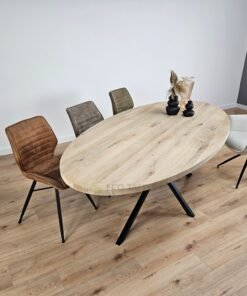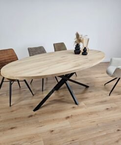 De Eiken ovale tafel met Twist Poot K4 is niet alleen een gebruiksvoorwerp, maar een stijlvol ontwerpstuk dat jouw eetkamer of leefruimte naar een hoger niveau tilt. Een perfecte balans tussen natuurlijke elegantie en modern design.