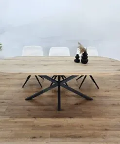 Dankzij de combinatie van eikenhout en staal past deze tafel in uiteenlopende woonstijlen. Of je nu houdt van modern, industrieel, Scandinavisch of Japandi – de Matrixpoot K5 voegt een krachtig accent toe aan elk interieur.