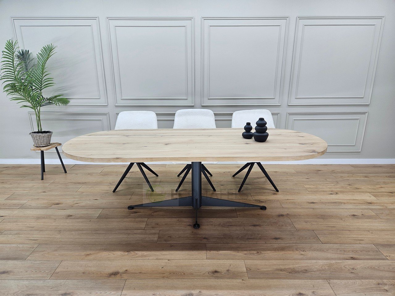 Eiken plat ovale tafel met Octo onderstel – Organische Vorm met Eigentijds Statement