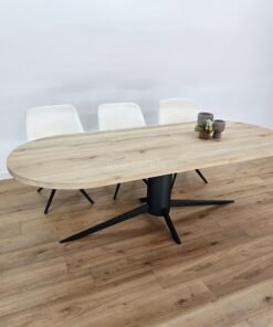 Eiken plat ovale tafel met Otrix onderstel – Stijlvol Evenwicht tussen Vorm en Functionaliteit