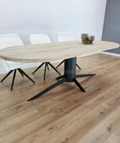 De Eiken plat ovale tafel met Otrix onderstel is niet zomaar een tafel – het is een stijlvol middelpunt in je woon- of eetkamer. Voor wie houdt van natuurlijke materialen in combinatie met opvallend design.
