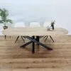 Het Otrix onderstel bestaat uit twee metalen frames met een grafische, asymmetrische vorm. De combinatie van schuine lijnen en open vlakken geeft de tafel een moderne en licht industriële uitstraling. Ondanks het luchtige ontwerp staat het onderstel stevig en biedt het uitstekende ondersteuning.