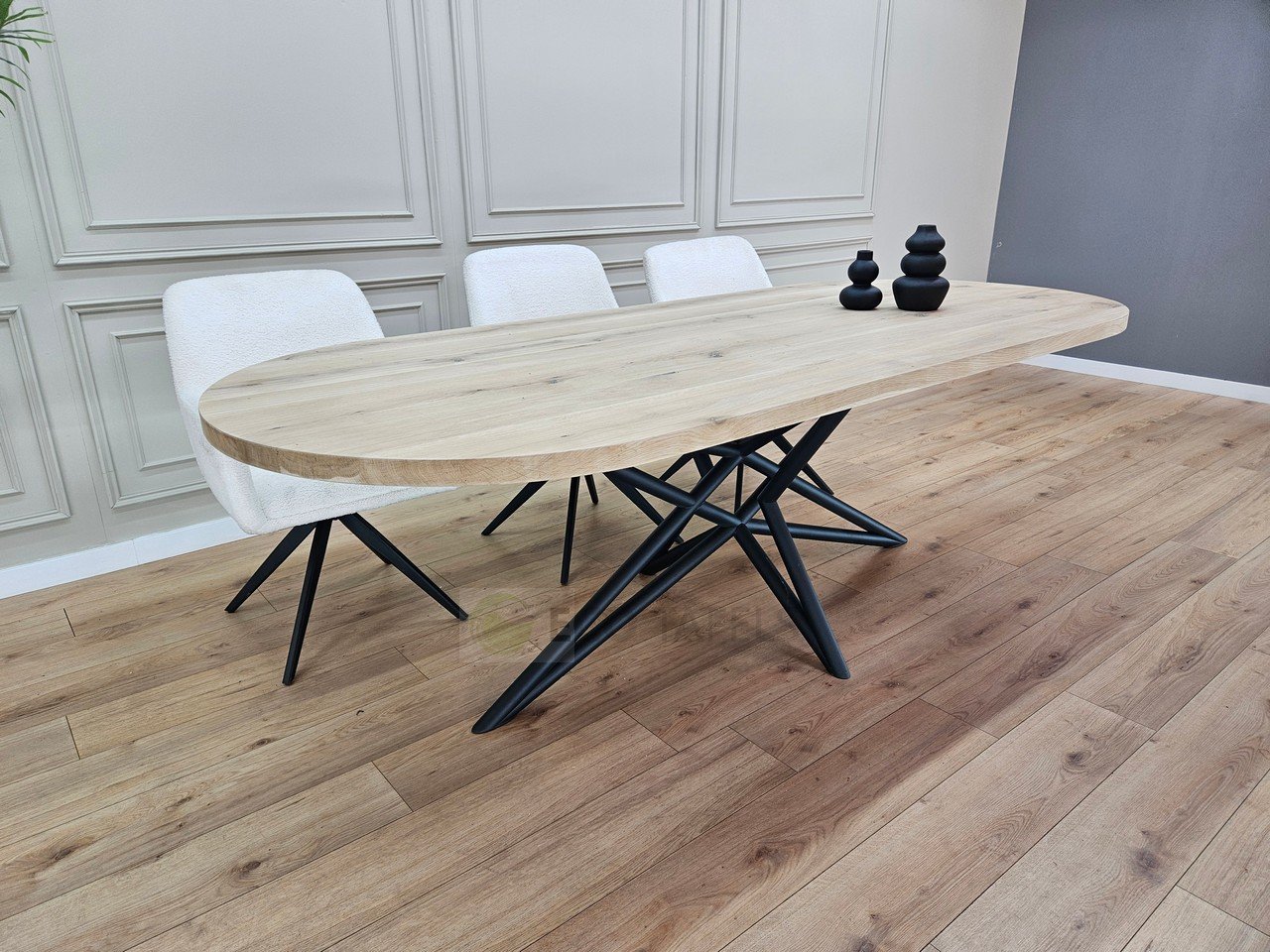Eiken plat ovale tafel met Ster onderstel – Eigentijds en Uniek