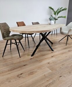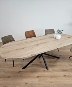 De Eiken plat ovale tafel met Twist Poot K4 is een stijlvolle en praktische keuze voor wie iets bijzonders zoekt. Een tafel die net zo goed functioneert als eettafel, werkplek of vergadertafel – met design dat blijft boeien.
