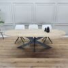 Eiken plat ovale tafel met Twist Poot K4 – Sculpturaal Design met Natuurlijke Rust