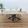 Doordat het onderstel centraal is geplaatst, blijft er rondom veel beenruimte over. Dat maakt de tafel zowel visueel aantrekkelijk als praktisch in gebruik.