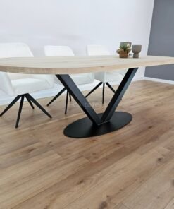 Eiken plat ovale tafel met V-Poot ovaal – Strakke Vormgeving met Warme Uitstraling