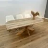 Eikenhout is een van de sterkste en meest duurzame houtsoorten. Dankzij de afwerking blijft het tafelblad jarenlang mooi. Een licht vochtige doek is voldoende voor dagelijks onderhoud.