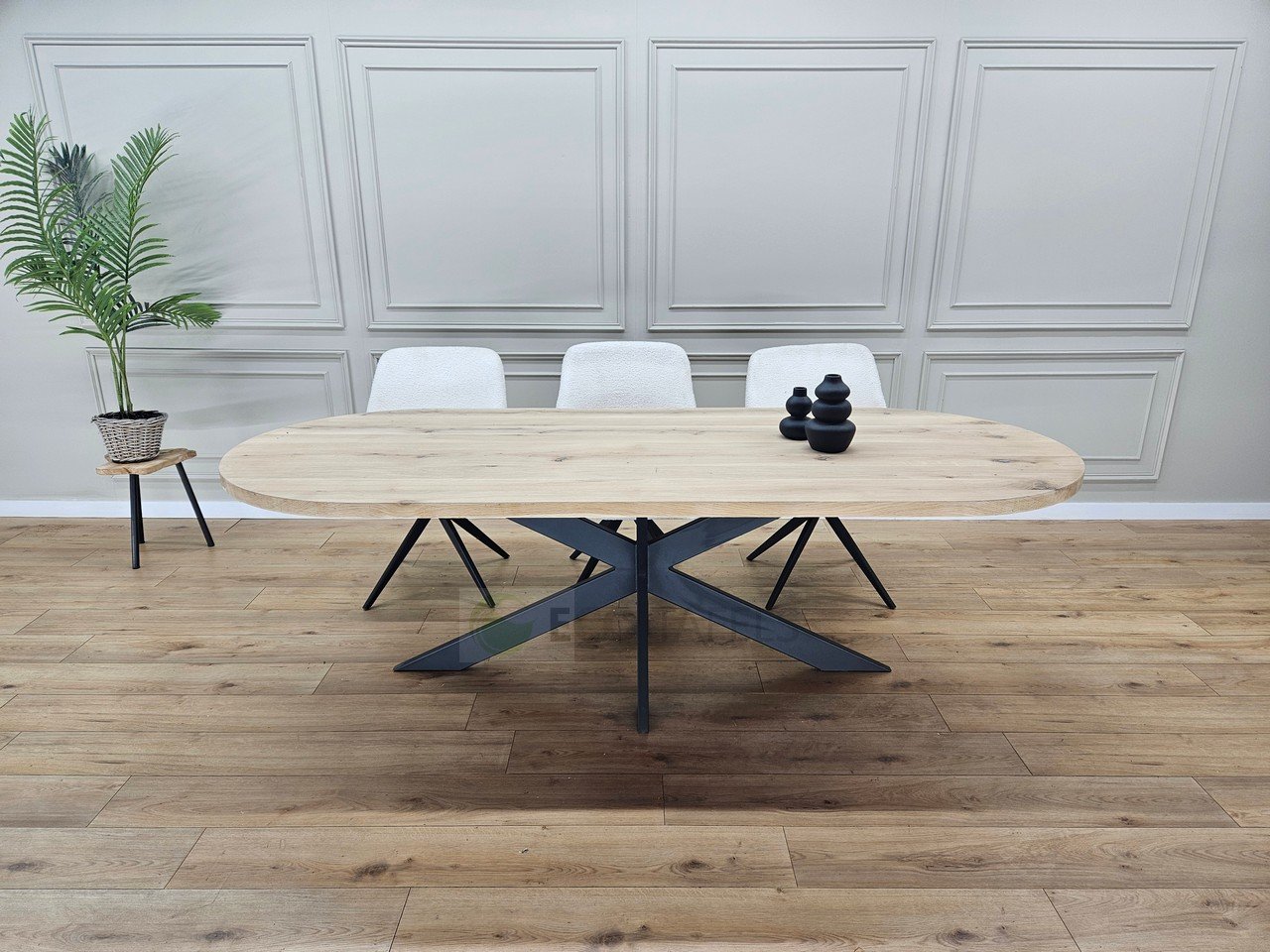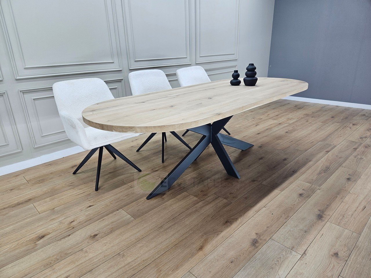 Eiken plat ovale tafel met Smalle-Matrix Poot – Slank Design met Natuurlijke Warmte