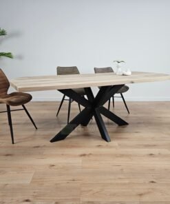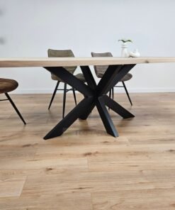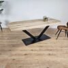 Eiken recht/rond tafel Smalle matrixpoot