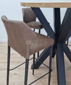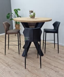 Foto: Prachtige glad geschuurd ronde eiken bartafel met rechte rand, gemaakt van het mooiste eikenhout en volledig massief! Bladdikte: 4cm