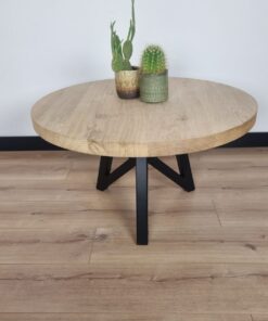 Eiken Ronde Salontafel met Vlinder Onderstel – Elegant en Uniek