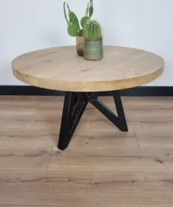 Eiken Ronde Salontafel met Vlinder Onderstel – Elegant en Uniek