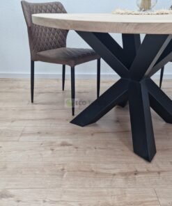 Eiken Ronde Tafel met Diamant Matrix Onderstel – Stijlvol, Stevig en Uniek