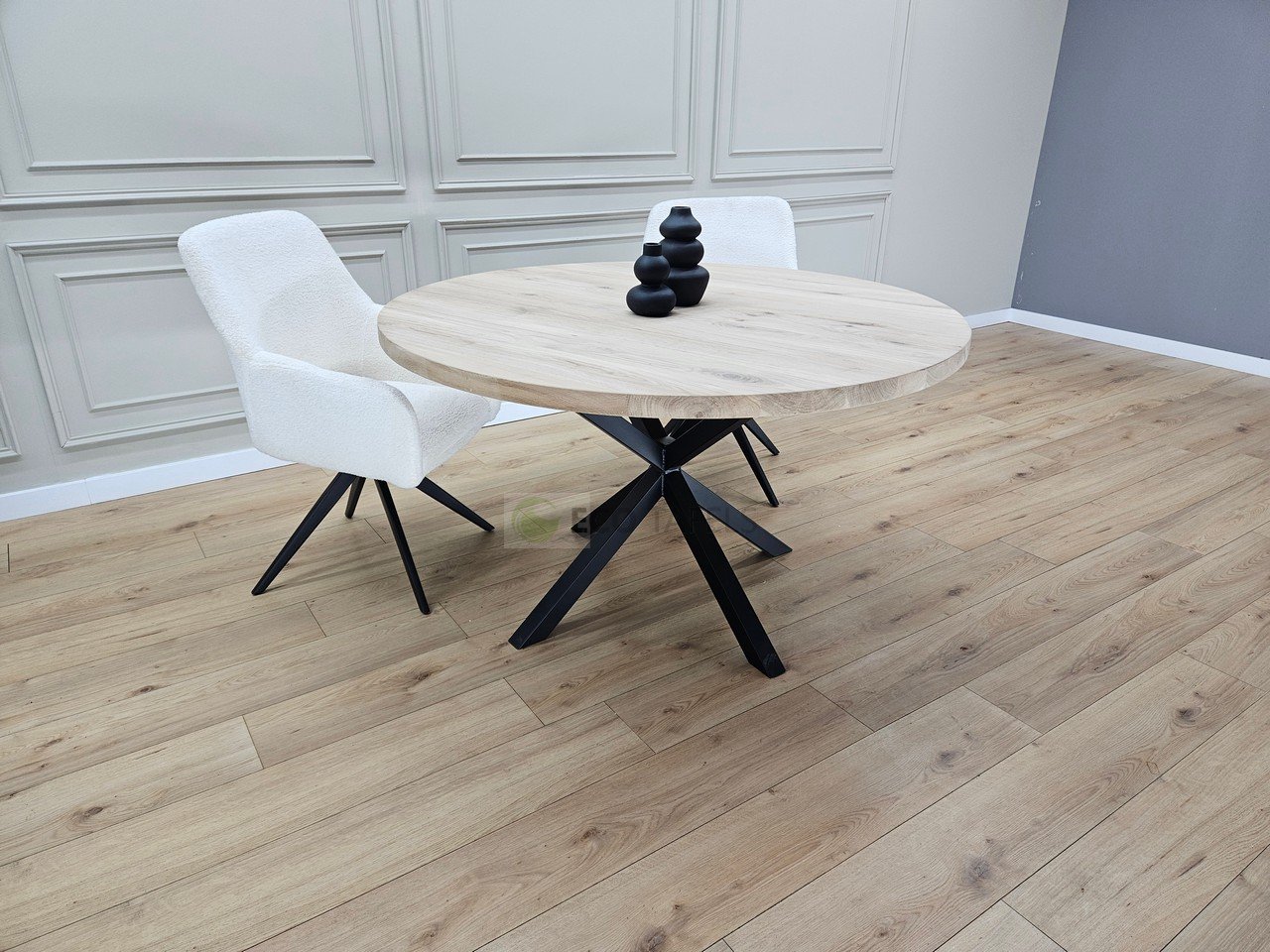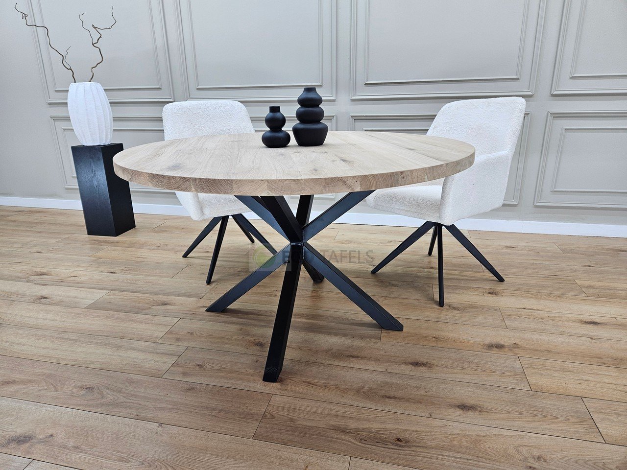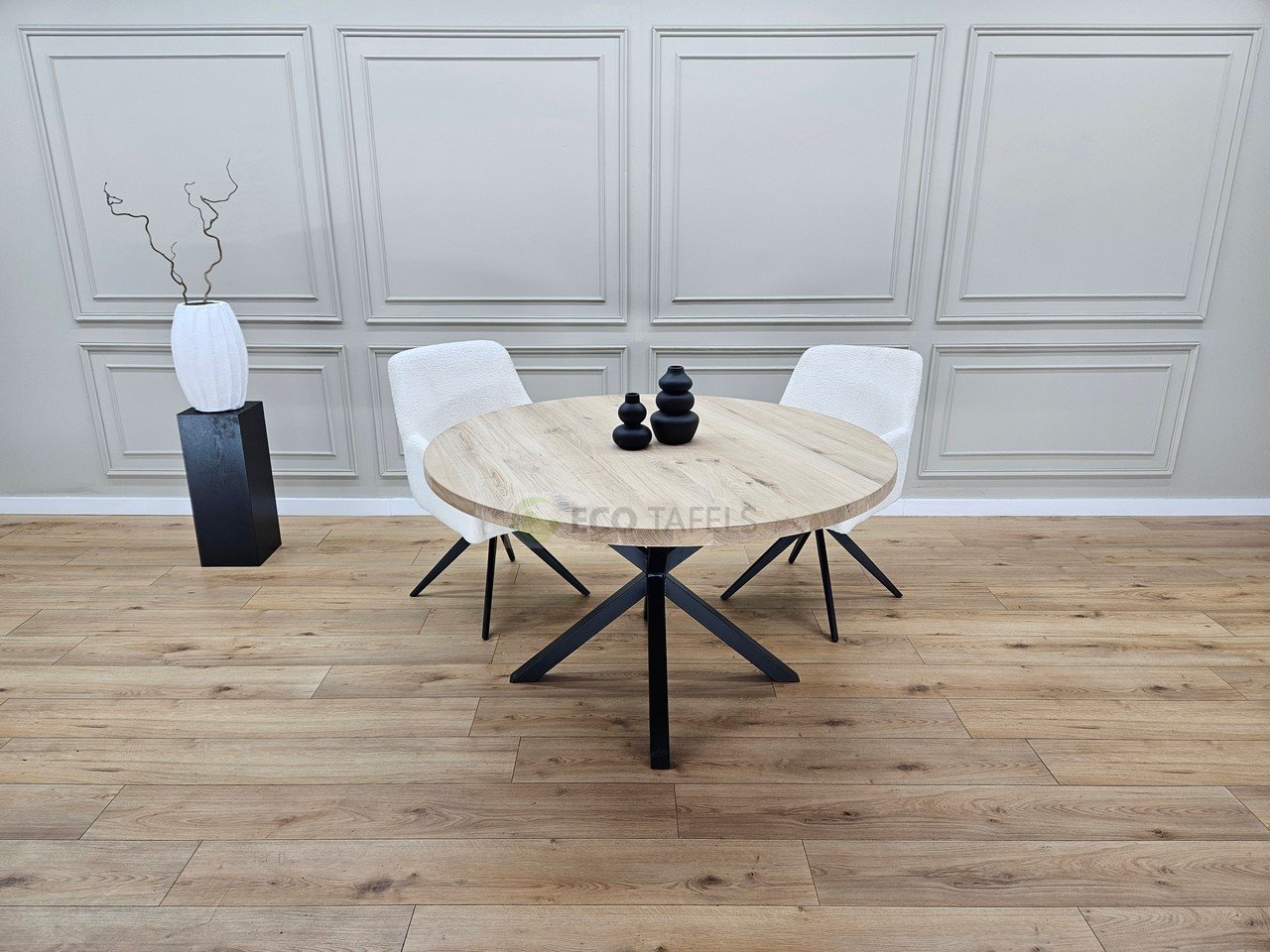 Eiken Ronde Tafel met Matrix-Onderstel K5 – Modern, Stevig en Tijdloos