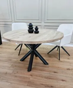 De eiken ronde tafel met matrixpoot rond combineert tijdloos design met moderne stabiliteit. Het massief eiken tafelblad heeft een warme, natuurlijke uitstraling en de ronde matrixpoot voegt een uniek, eigentijds element toe. Deze tafel is niet alleen een blikvanger, maar ook bijzonder praktisch in dagelijks gebruik.